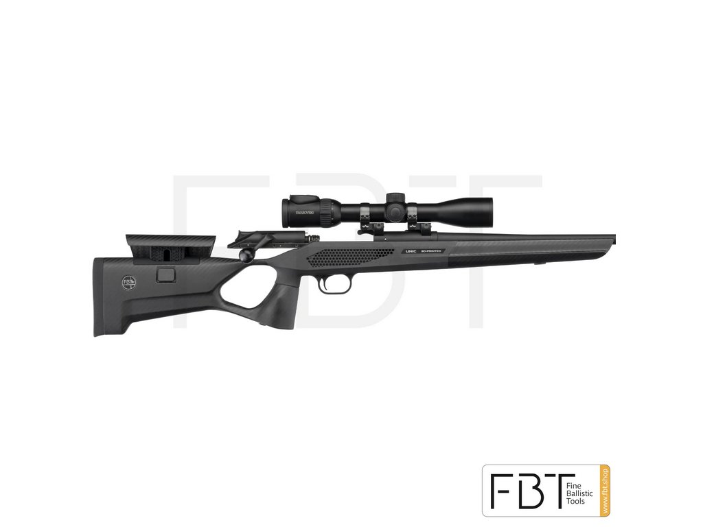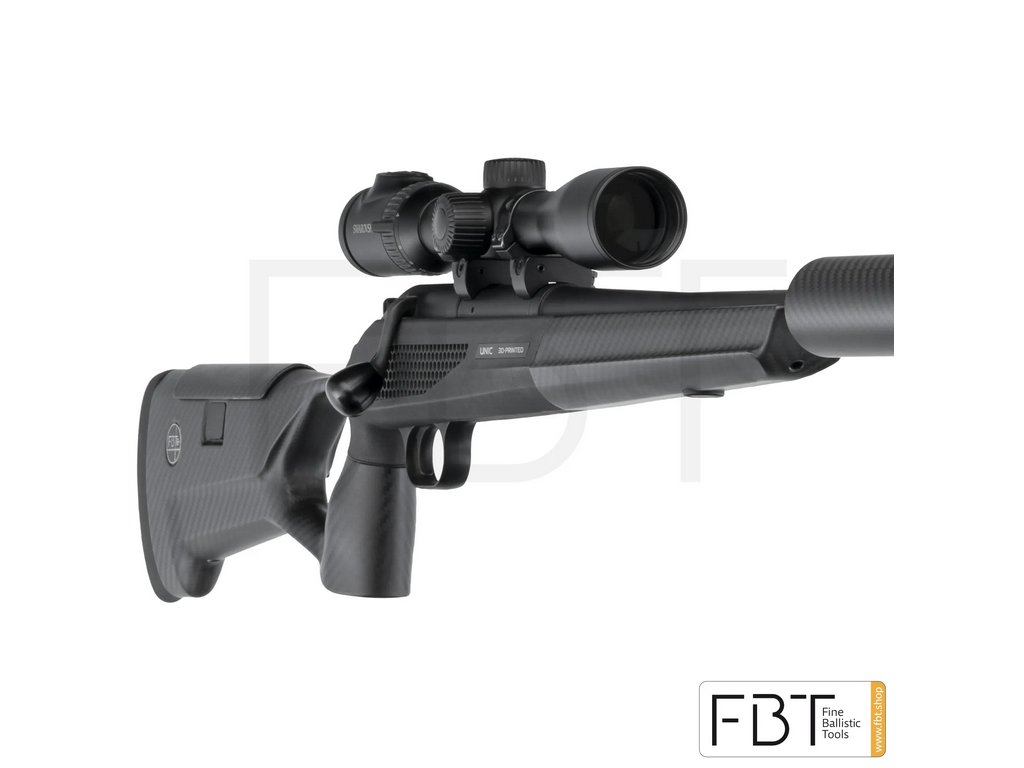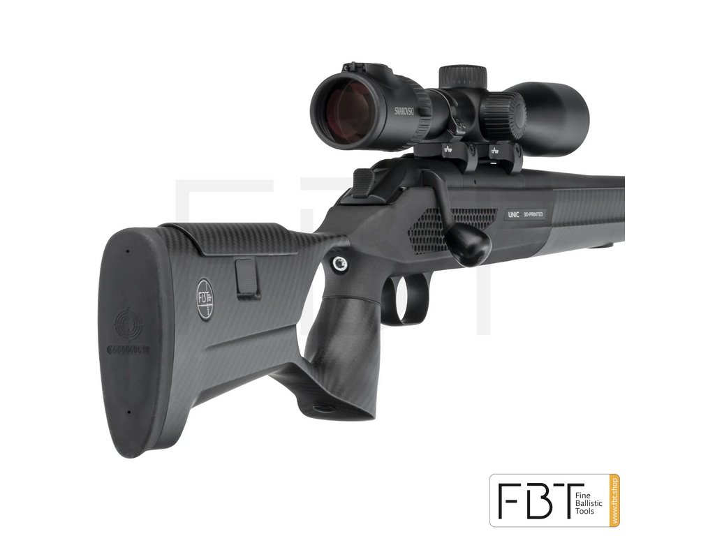 ULTRAĽAHKÁ-EXTRÉMNE ODOLNÁ-DOKONALE ERGONOMICKÁ Premeňte svoju zbraň Blaser R93 Professional na ešte výkonnejšiu – vybavte ju inovatívnou pažbou FBT UNIC z uhlíkových vlákien. Vďaka precíznemu spracovaniu a špičkovým materiálom získate ľahkú, pevnú a odolnú pažbu, ktorá posúva presnosť a komfort streľby na novú úroveň. Kľúčové vlastnosti UNIC pažby: Hybridná konštrukcia: Predpažbie a pažba sú vyrábané z uhlíkového kompozitu, zatiaľ čo stredová časť (spoje a jadro) je 3D tlačená z technického plastu, ktorý je zosilnený karbónovými vláknami. Spojenie častí je optimalizované pre systém Blaser R93 Professional Ultraľahká a pevná: Váha celej pažby len cca 638 g, čo výrazne znižuje celkovú hmotnosť zbrane a zlepšuje manipuláciu. Napriek nízkej hmotnosti ponúka vysokú pevnosť a odolnosť proti nárazu, deformáciám aj poveternostným vplyvom. Zvýšená presnosť: Stabilita pažby znižuje spätný ráz a vedie k presnejšej a konzistentnejšej streľbe Povrchová úprava Cerakote H-Series: Všetky 3D tlačené komponenty sú potiahnuté vrstvou Cerakote Cobalt H-112 – matná, tmavosivá farba pre elegantný vzhľad a funkčnú odolnosť. Povrch je: Koróziivzdorný Mechanicky odolný (voči oderu, nárazu aj škrabancom) Chemicky odolný voči olejom, rozpúšťadlám a čistiacim prostriedkom Ergonómia a dizajn: Rukoväť s otvoreným úchopom (otvor na drieku) je ergonomicky navrhnutá pre pravákov aj ľavákov. Modulárny dizajn – bočné panely stredovej pažby sú vymeniteľné, rovnako ako nastaviteľná lícnica. Vzhľadom na zníženú hmotnosť a ideálnu ergonómiu sa zbraň výborne drží Výrobná filozofia FBT UNIC: Malosériová a individuálna výroba, každý kus prechádza dôkladnou kontrolou kvality. Rovnaká ergonómia a dizajn Patentovaný dizajn umožňuje výrobu za výrazne nižšiu cenu než konkurenčné karbónové pažby, ktoré často presahujú cenu 3 500 €. Pre koho sú pažby FBT určené? Pre náročných poľovníkov, profesionálnych strelcov, športových nadšencov i zberateľov, ktorí chcú z pušky Blaser R93 Professional dostať maximum – funkčne aj vizuálne. UNIC je ideálny upgrade pre tých, ktorí chcú ľahšiu, presnejšiu a modernejšiu pažbu. LINK NA FBT KONFIGURÁTOR ↓ FBT KONFIGURÁTOR Cena 1790 € platí pre základné vyhotovenie pažby UNIC. Výsledná cena závisí od vašich individuálnych požiadaviek a konfigurácie.Buďte první, kdo napíše příspěvek k této položce.