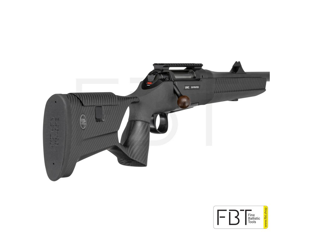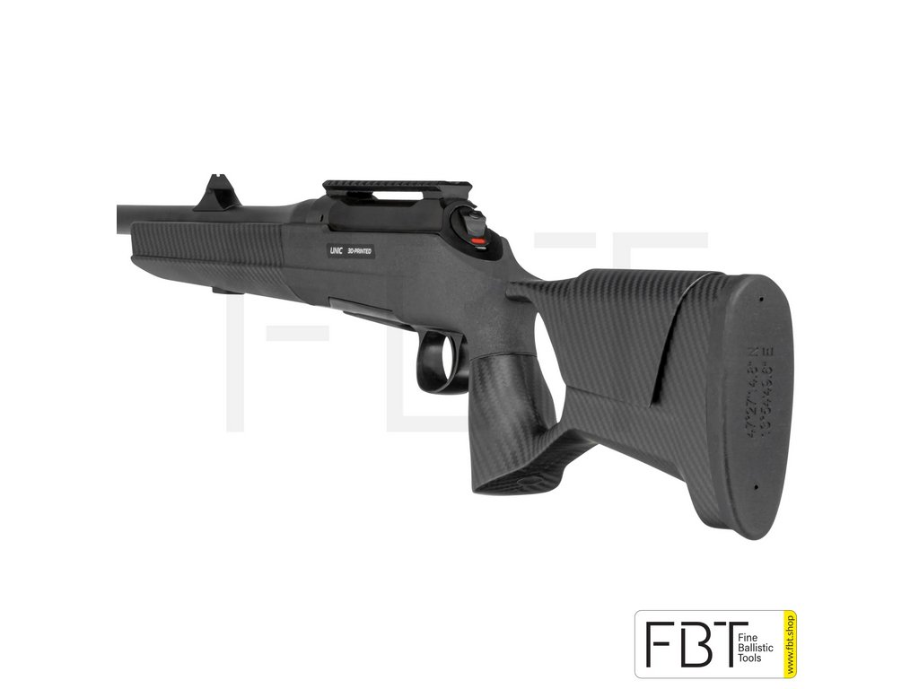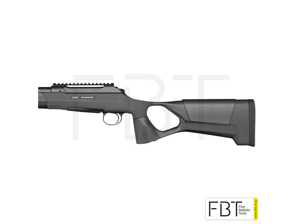 ULTRAĽAHKÁ-EXTRÉMNE ODOLNÁ-DOKONALE ERGONOMICKÁ Premeňte svoju zbraň Sauer 101 na ešte výkonnejšiu – vybavte ju inovatívnou pažbou FBT UNIC z uhlíkových vlákien. Vďaka precíznemu spracovaniu a špičkovým materiálom získate ľahkú, pevnú a odolnú pažbu, ktorá posúva presnosť a komfort streľby na novú úroveň. Kľúčové vlastnosti UNIC pažby: Hybridná konštrukcia: Predpažbie a pažba sú vyrábané z uhlíkového kompozitu, zatiaľ čo stredová časť (spoje a jadro) je 3D tlačená z technického plastu, ktorý je zosilnený karbónovými vláknami. Spojenie častí je optimalizované pre systém Sauer 101 Ultraľahká a pevná: Váha celej pažby len cca 688 g, čo výrazne znižuje celkovú hmotnosť zbrane a zlepšuje manipuláciu. Napriek nízkej hmotnosti ponúka vysokú pevnosť a odolnosť proti nárazu, deformáciám aj poveternostným vplyvom. Zvýšená presnosť: Stabilita pažby znižuje spätný ráz a vedie k presnejšej a konzistentnejšej streľbe Povrchová úprava Cerakote H-Series: Všetky 3D tlačené komponenty sú potiahnuté vrstvou Cerakote Cobalt H-112 – matná, tmavosivá farba pre elegantný vzhľad a funkčnú odolnosť. Povrch je: Koróziivzdorný Mechanicky odolný (voči oderu, nárazu aj škrabancom) Chemicky odolný voči olejom, rozpúšťadlám a čistiacim prostriedkom Ergonómia a dizajn: Rukoväť s otvoreným úchopom (otvor na drieku) je ergonomicky navrhnutá pre pravákov aj ľavákov. Modulárny dizajn – bočné panely stredovej pažby sú vymeniteľné, rovnako ako nastaviteľná lícnica. Vzhľadom na zníženú hmotnosť a ideálnu ergonómiu sa zbraň výborne drží Výrobná filozofia FBT UNIC: Malosériová a individuálna výroba, každý kus prechádza dôkladnou kontrolou kvality. Rovnaká ergonómia a dizajn Patentovaný dizajn umožňuje výrobu za výrazne nižšiu cenu než konkurenčné karbónové pažby, ktoré často presahujú cenu 3 500 €. Pre koho sú pažby FBT určené? Pre náročných poľovníkov, profesionálnych strelcov, športových nadšencov i zberateľov, ktorí chcú z pušky Sauer 101 dostať maximum – funkčne aj vizuálne. UNIC je ideálny upgrade pre tých, ktorí chcú ľahšiu, presnejšiu a modernejšiu pažbu. LINK NA FBT KONFIGURÁTOR ↓ FBT KONFIGURÁTOR Cena 1790 € platí pre základné vyhotovenie pažby UNIC. Výsledná cena závisí od vašich individuálnych požiadaviek a konfigurácie.Buďte první, kdo napíše příspěvek k této položce.