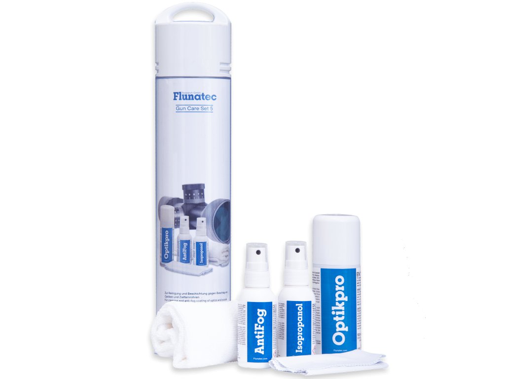Profesionální sada pro dokonalou péči o optiku – puškohledy, dalekohledy, kolimátory i sportovní či lovecké přístroje s displejem. V jednom balení získáte kompletní systém péče: šetrný čistič optiky Fluna Optik Pro ve formě pěny, která snadno odstraní nečistoty a prach, isopropanol k odmaštění skleněných povrchů, přípravek Fluna Anti Fog, jenž vytvoří dlouhodobou vrstvu proti zamlžování, a dvě kvalitní utěrky (mikrovláknová a speciální lešticí) pro perfektně čistý obraz bez šmouh.